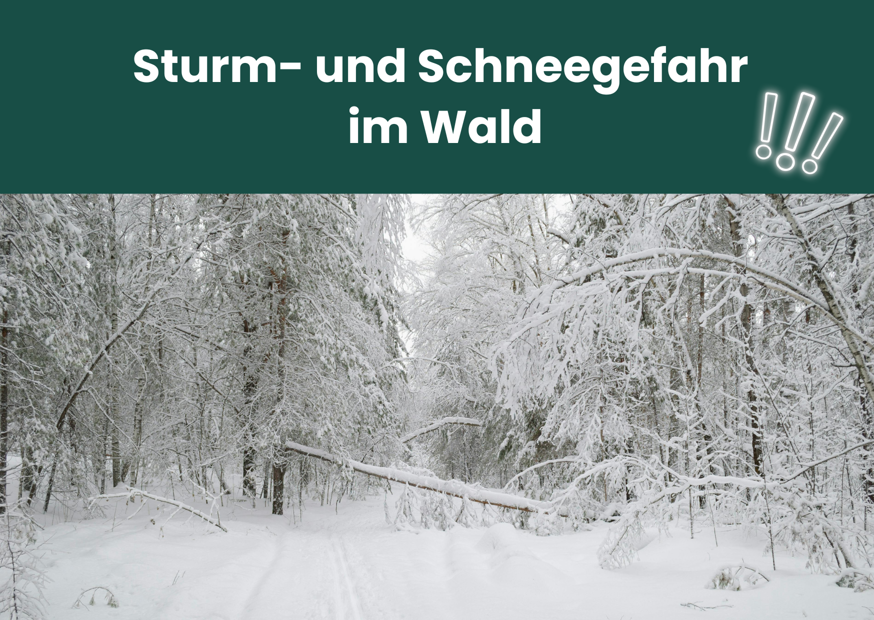 Der Winter hat das Land im Griff. Für die kommenden Tage sind Sturmböen und Schneefall prognostiziert. Das Kreisforstamt weist darauf hin, dass Schneefall zu Schneebruch führen kann. Das bedeutet, dass es im Wald unvermittelt zu plötzlichen Ast- oder Gipfelabbrüchen durch die Schneelast zu rechnen ist. Das bedeutet auch, dass Wege durch umgestürzte Bäume blockiert sein können.